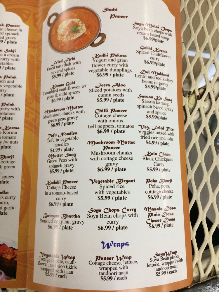 The menu boasts a standout Paneer Pizza, featuring spiced cottage cheese and bell peppers, a perfect blend of flavors at just $14.99. Satisfy your sweet tooth with their rich selection of desserts like Khoa Kulfi and Gajar Halwa, ranging from $7.99 to $9.99. You can also refresh yourself with unique beverages such as Mango Lassi and Milk Soda, adding a delightful twist to your meal.